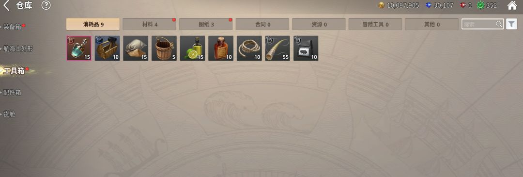 在游戏中,“工具” 是对消耗品、材料、蓝图、契约书、教本等 “用于强化与升级的物品” 的统称,覆盖航海全场景需求。