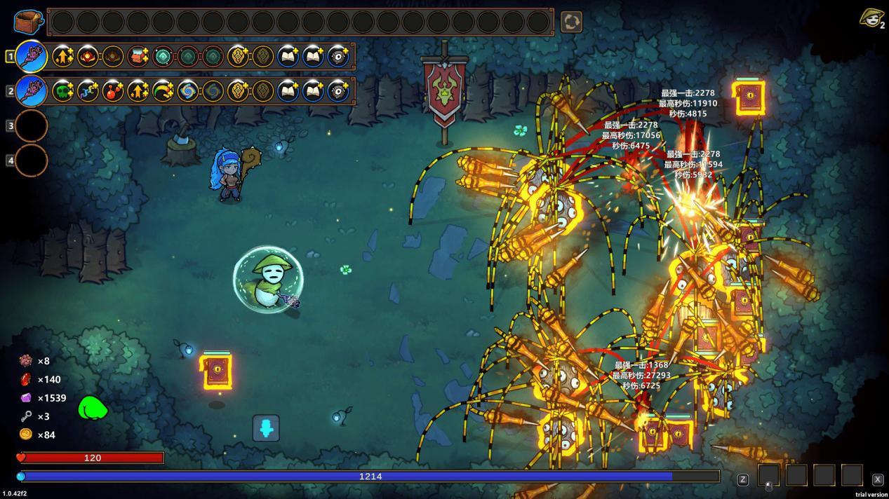 提高法杖魔法值的方法很多,最简单的就是遗物「梅林帽」,直接增加魔法值。还有一个比较绕的方式,遗物「无尽药瓶」和「疗愈腰带」配合,反复喝药水,就能增加魔法值,还能顺便增加生命值,最重要的一点来了,「商人宝珠」也很重要,进入商店才能刷新特殊房间,在特殊房间里购买药水,进一步搭配药水流的效果。