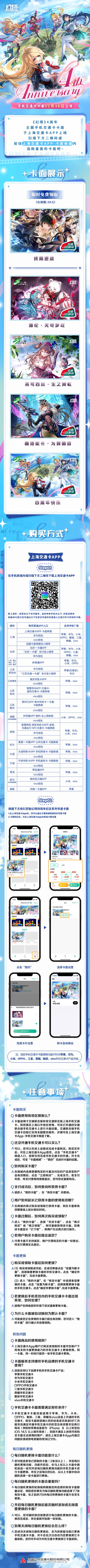 幻想四周年!幻塔×上海公共交通卡 联动现已正式上线!速来领取免费卡面-终局逆战,更有3款精美拟态卡面,1款四周年限定卡面等你解锁~幻想不设限,通往无限未来,覆盖全国330+城市均可使用!