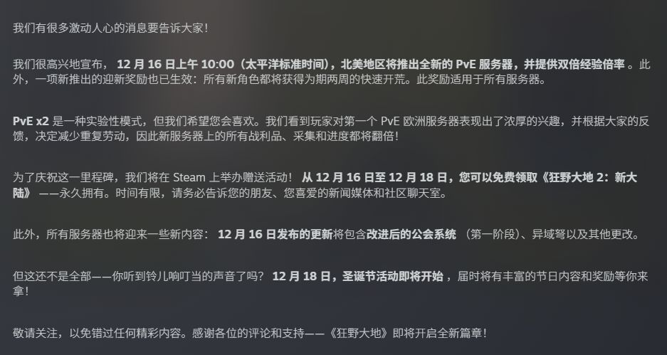 就在昨天,《荒野之地2:新大陆》官方发布Steam公告,公告中表明游戏《荒野之地2:新大陆》将于