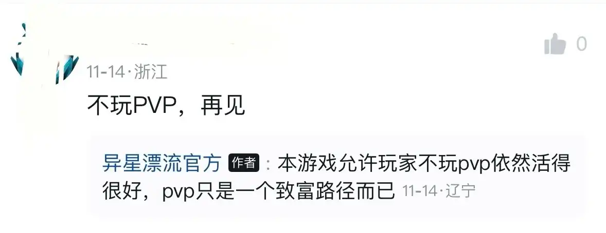 2.玩家B吐槽:“不玩pvp,再见”异星漂流回复:莫走哇!本游戏pve和pvp都可以玩呀!(玩家!你走了还会回来吗?你一定要幸福啊)