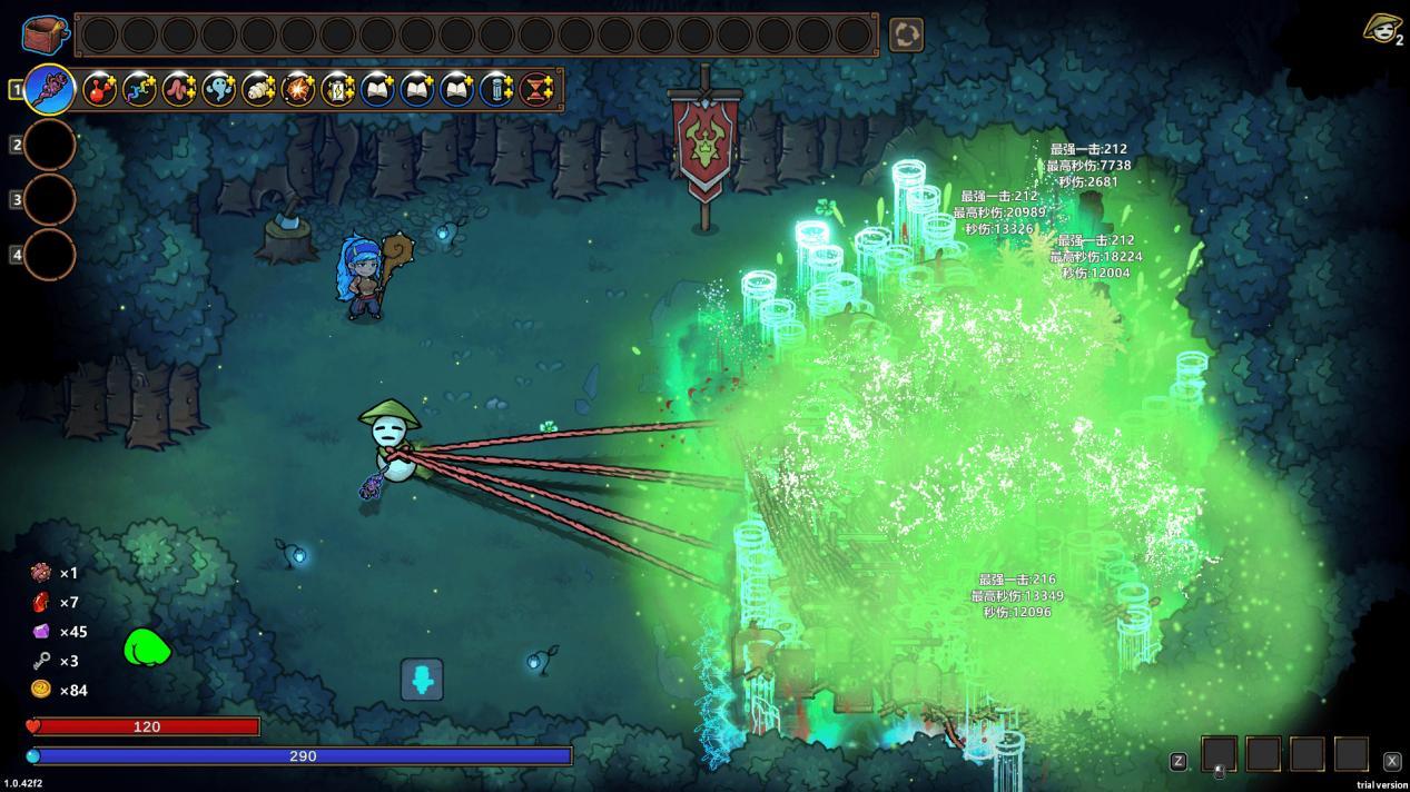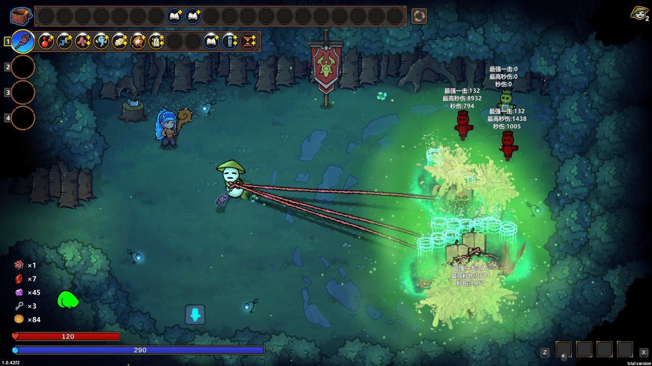 配合「精魄」赋予「魔导书」的新能力,「魔导书」瞬移到场地的边缘,基本上可以做到满场铺满「脐带」,无死角进行输出。同时「精魄」赋予「光之柱」的新能力也能造成持续的输出。建议可以保证生存能力的同时,也能提高「光之柱」的输出。