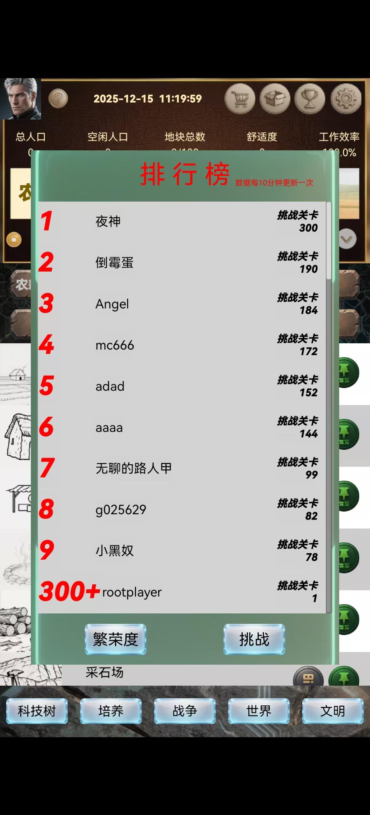 游戏测试经过一个月,经过大量bug修复,游戏优化以及无止尽的杂事以后已经逐渐稳定,我将在后续集中精力进行正式版的开发工作,为感谢大家在测试版中的游戏,现准备对测试版达到一定游戏进度和排名的玩家在正式版《文明进化史2》中进行补偿,具体如下: