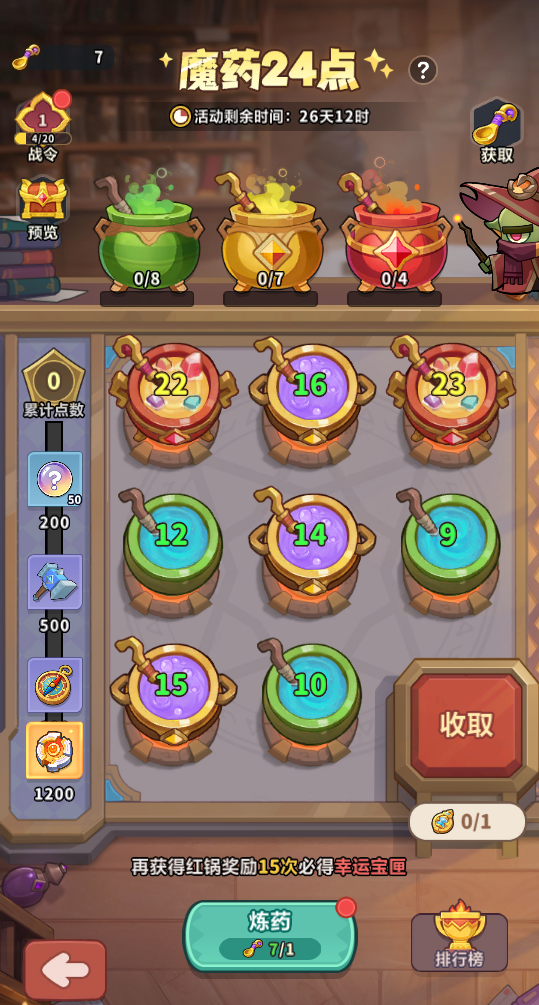 活动期间,国王大人可通过完成任务和挂机收集火花,消耗火花制造魔勺来进行炼药!