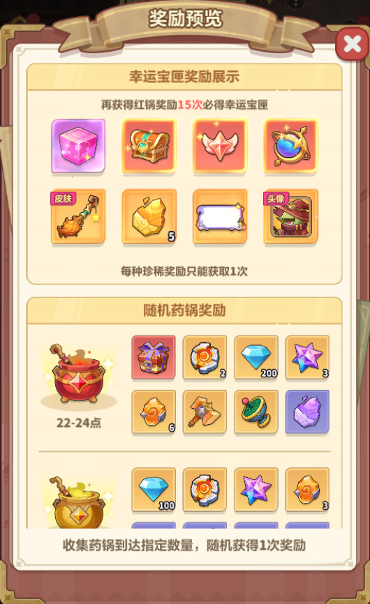 炼药过程中有机会获得幸运宝匣,其中包含随机红粉机关、随机绝世图腾、「魔法扫帚」武器幻化皮肤等超多奖励~