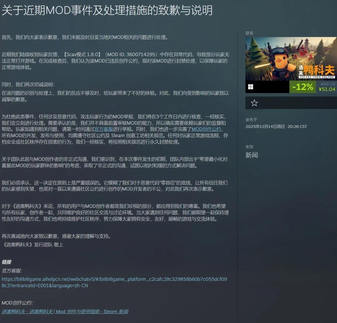 不知各位Tapper如何看待涉事作者的行为和开发组的处理方式的? #逃离鸭科夫官方致歉mod事件 #逃离鸭科夫