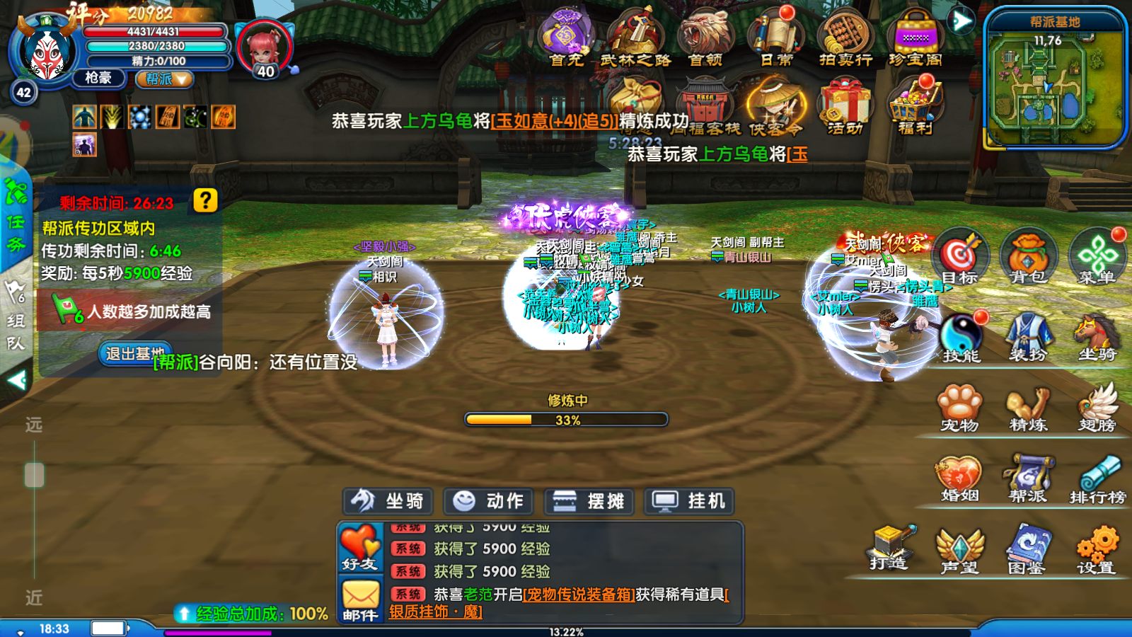 - 帮派共建:携手闯江湖:15 级可创建或加入帮派,日常完成采集、跑商等任务积累资金,每周参与帮派守卫战、领土战,近战坚守前线、远程后排支援,默契配合赢稀有装备与专属称号。帮派频道里畅聊战术,宴会时集体答题领经验,宛如温暖的大家庭。