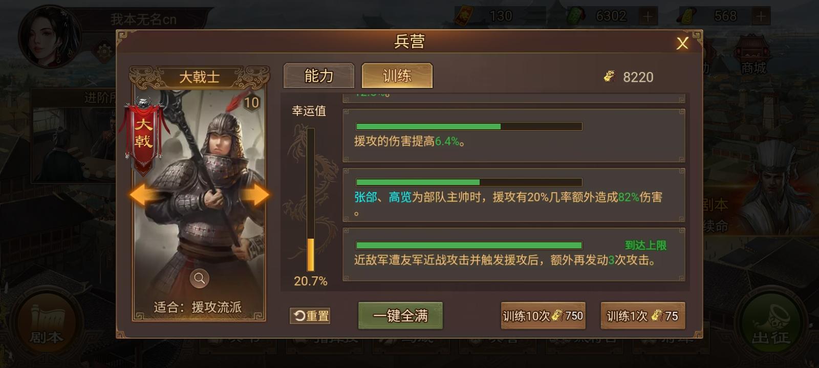 大戟士的训练主要是援攻次数弄满就可以暂停了。