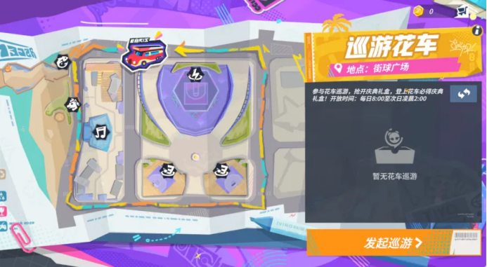 只需3步就能承包街球广场的焦点:在“广场指南-巡游花车”界面,点击发起巡游并购买花车巡游权,就能发起一场盛大的花车巡游,你的专属花车便会直接开上广场主干道巡游一圈。