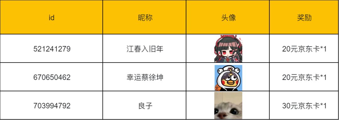 《分享喜欢的游戏军备赢京东卡》活动的幸运获奖者已通过系统随机抽取产生。