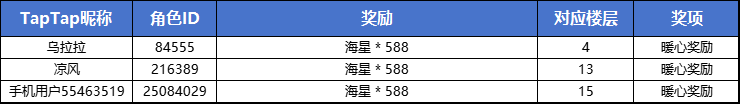 从符合参与条件的玩家中 随机抽取 3 位 获得【海星 * 588】