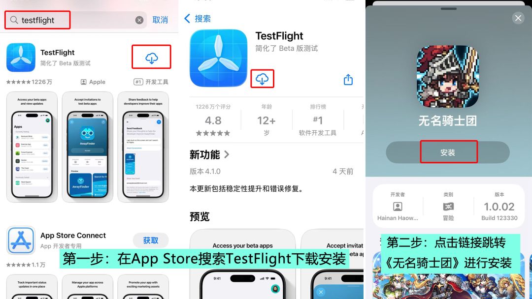 由于苹果测试的特殊性,iOS端的骑士需要通过TestFlight下载游戏进行测试。