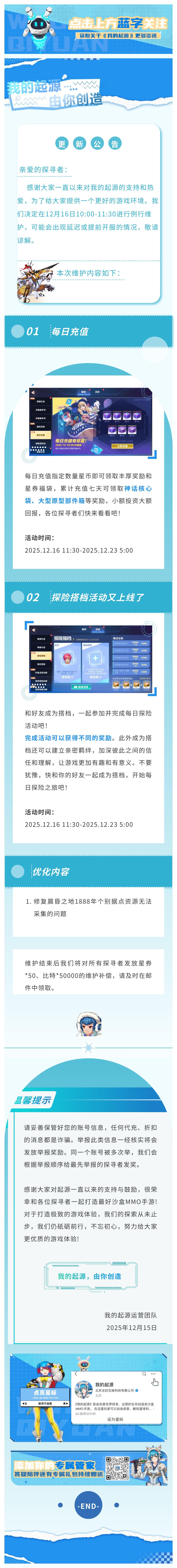 12.16更新公告|探险搭档活动上线~每日充值领好礼!