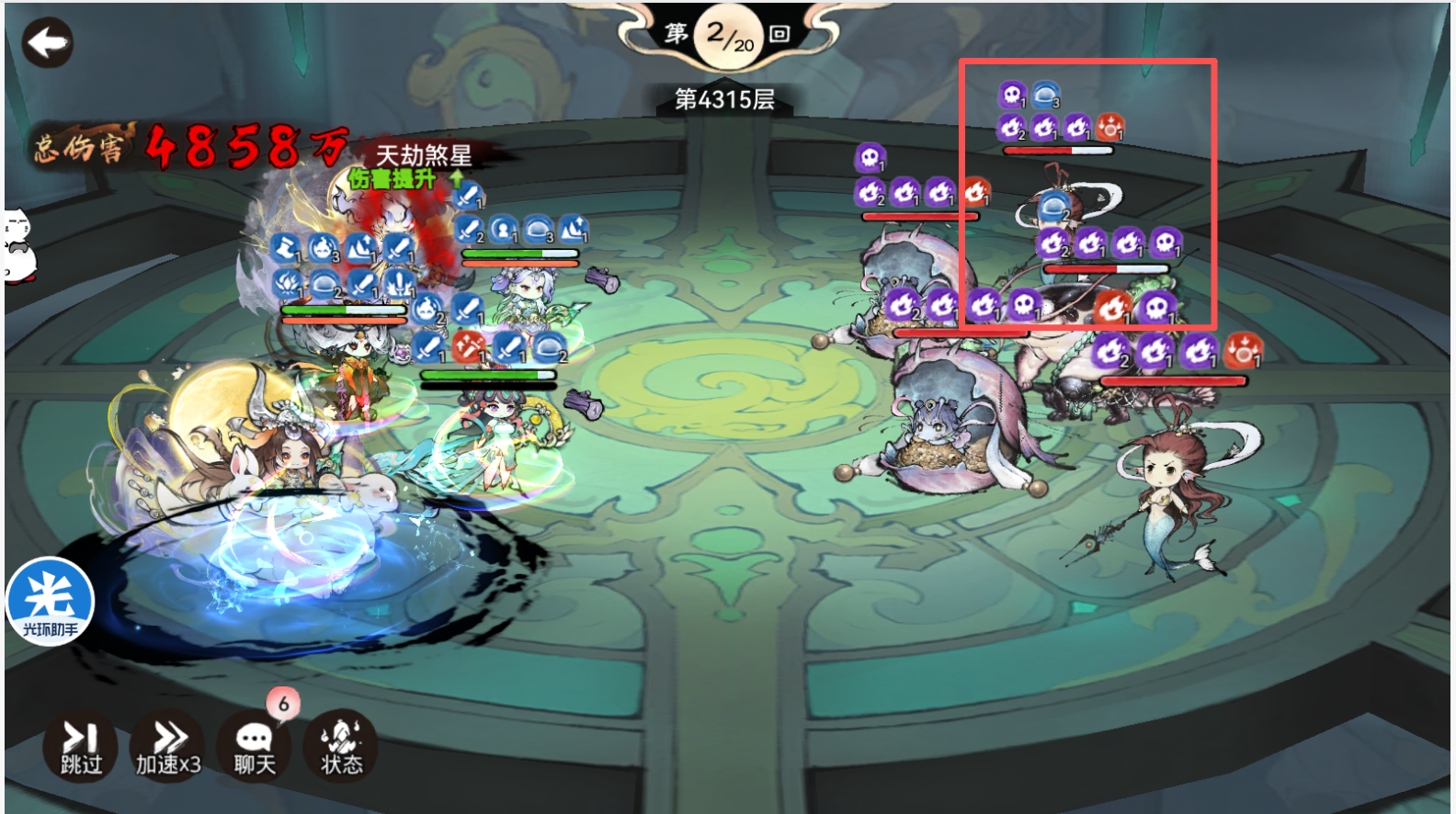 如果你用战力硬怼那你可以一直跳过,毕竟不怎么需要调,如果你用蛊队爬塔,一定不要一直跳过,要看看是出了什么问题,导致你过不去,是站位有问题就调站位,是特殊关卡怪需要应对就换装备、换技能、换角色,千万不要一直跳过,最少看个四五回合,看看怪是有什么特殊的地方导致你一直卡关,另外不止要看怪的回合内情况,还要看看回合结束后的战斗统计。
