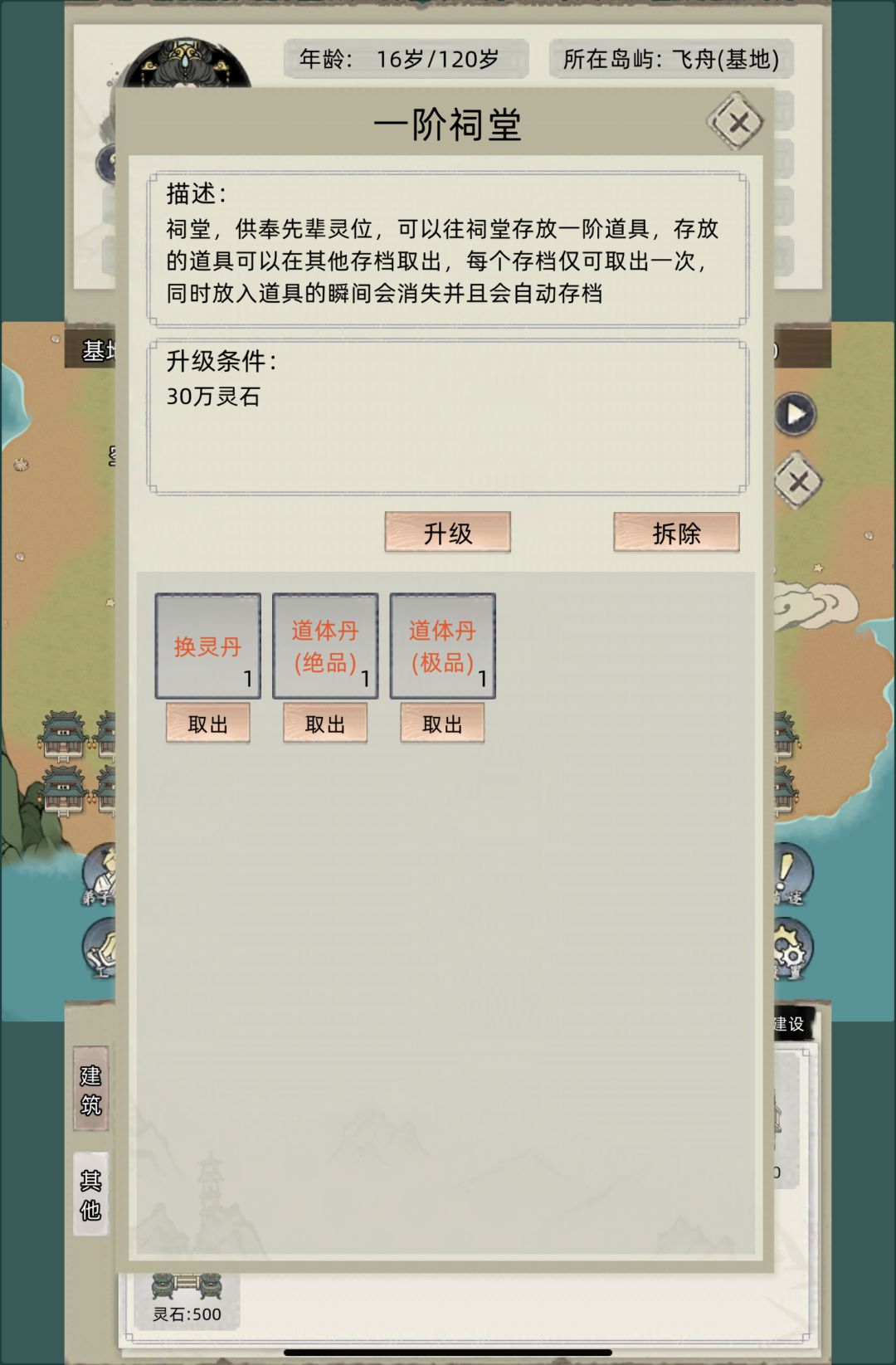 保存,驾驶飞舟往右边走,在地图右上和左下为1条线,地图资源大多刷新在右下这边,飞舟在这边转,找到4阶以上空冥石,路上碰到超品灵石矿和巨型灵石矿记一下位置。老登去挖空冥石。等21年麒麟子降临,选挖矿,去挖超品或者巨型。飞舟靠近灵矿再让弟子出去,弟子飞太慢了。从家里挑几个挖矿天资高点的,去挖青玉和白田玉。麒麟子挖矿,找到五行灵玉和黑曜宝玉,各挖二三十个这样,升级天道台,这会老登准备筑基大圆满了,去升仙台拿先天道源,天道台拿一个下品道体丹给它,这样可以有800资质,拿下剑贯星河。