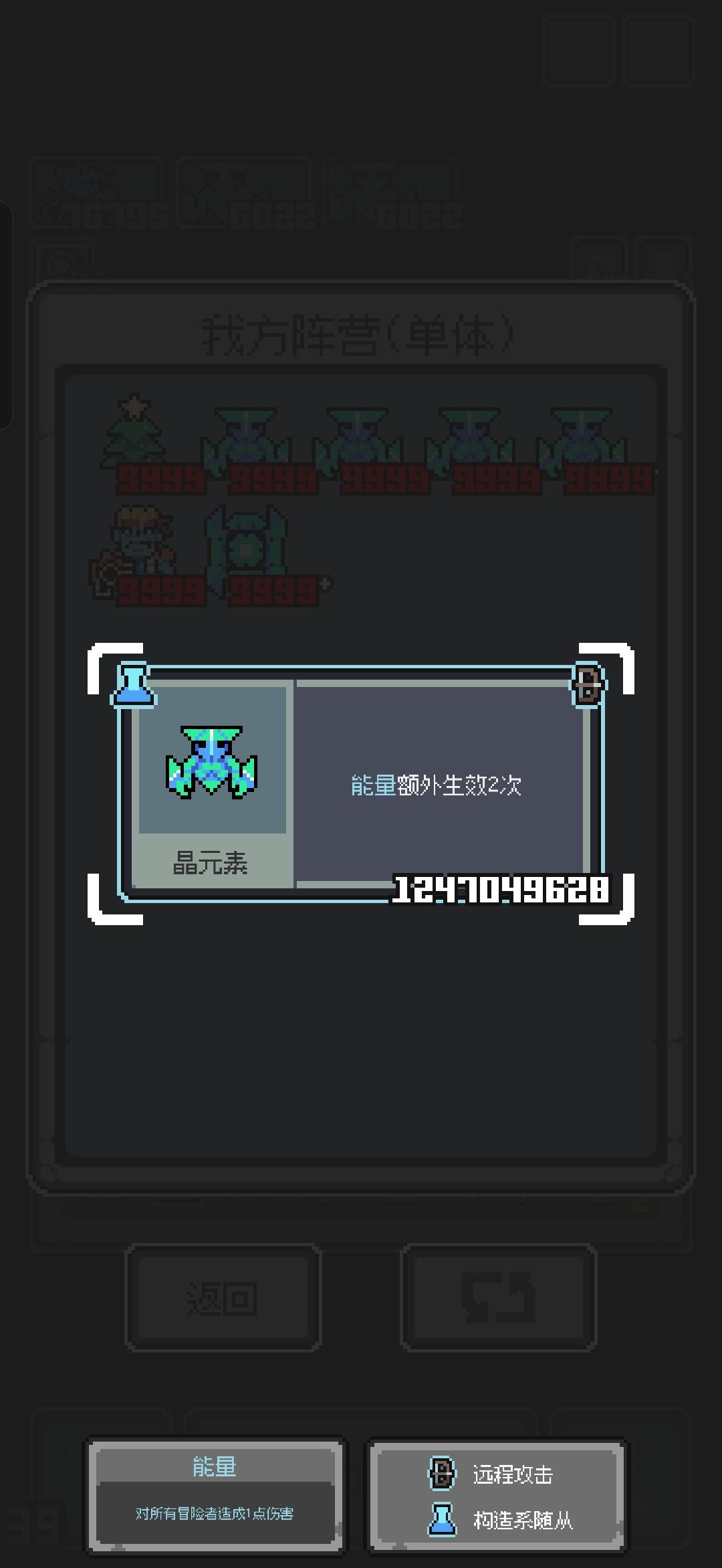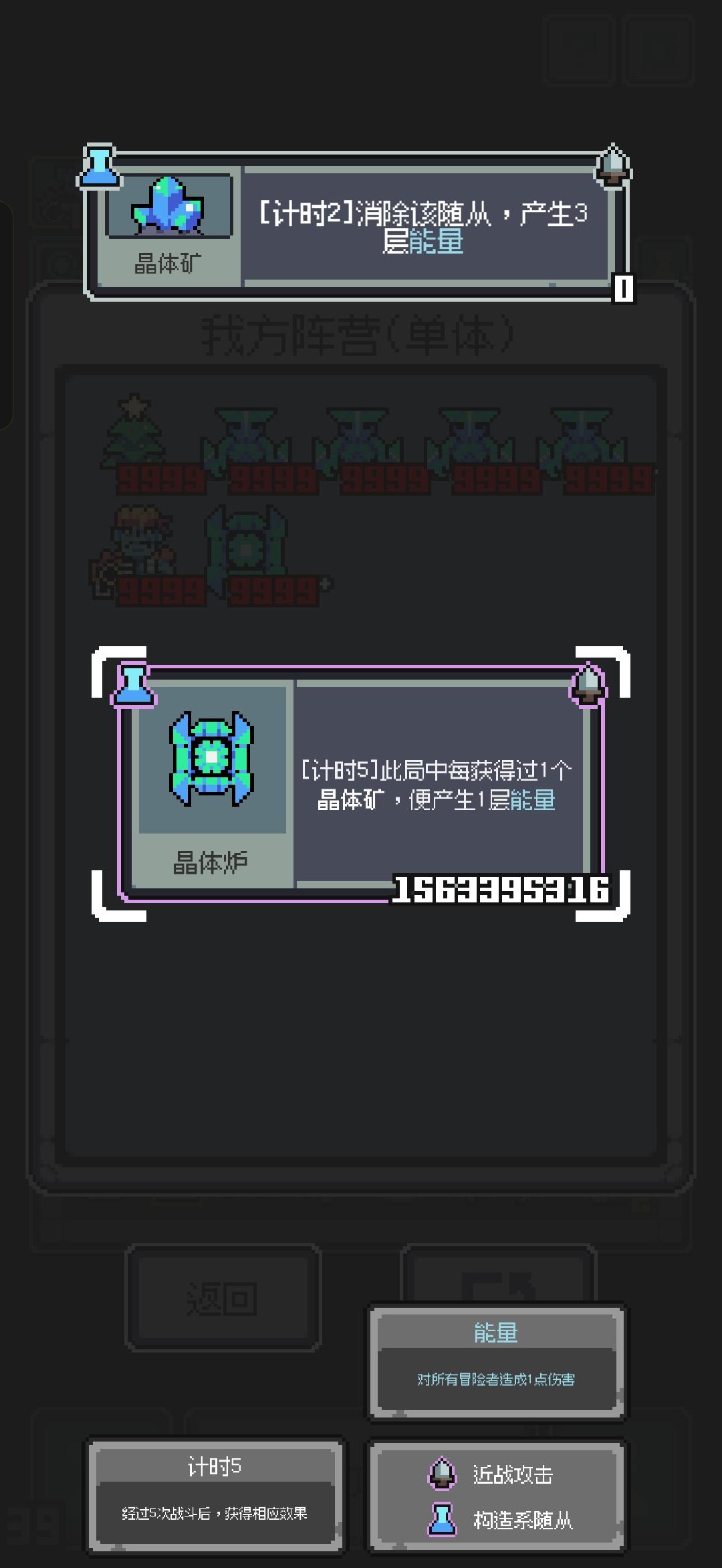 后期拿到伽马射线,就需要能量晶体炉(或者晶体矿)+晶元素来提供能量。这个时候其实已经不需要了,只是刷数据好看而已,因为圣诞树有个一万攻,就已经无敌平推了。。。