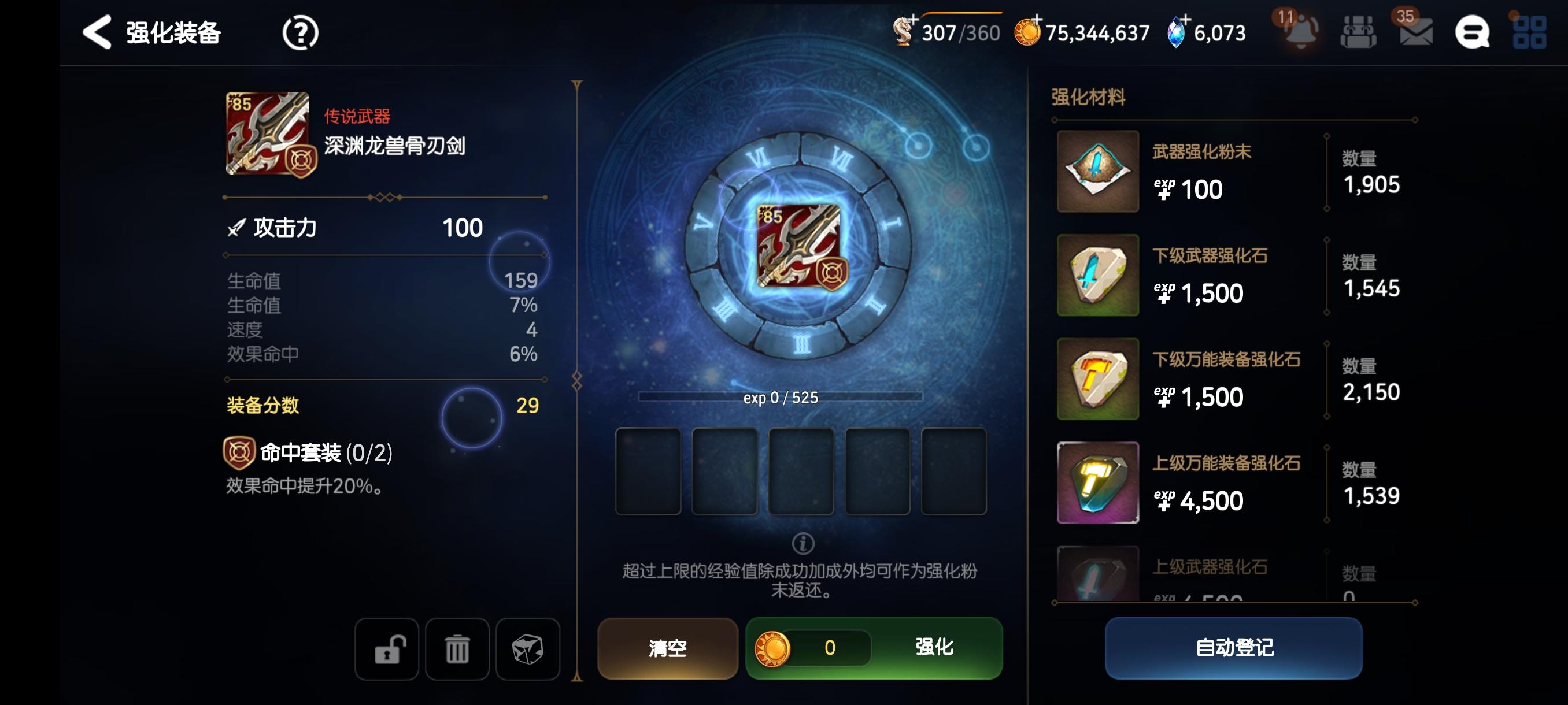 关于装备强化推荐是三级三级的点,梭哈不推荐如果强化废了很浪费资源,前面几级消耗的资源少后面9到15很吃资源,前面跳的低词条不怎么好分还低就可以扔,如果词条好基础高可以拿归零石归零。
