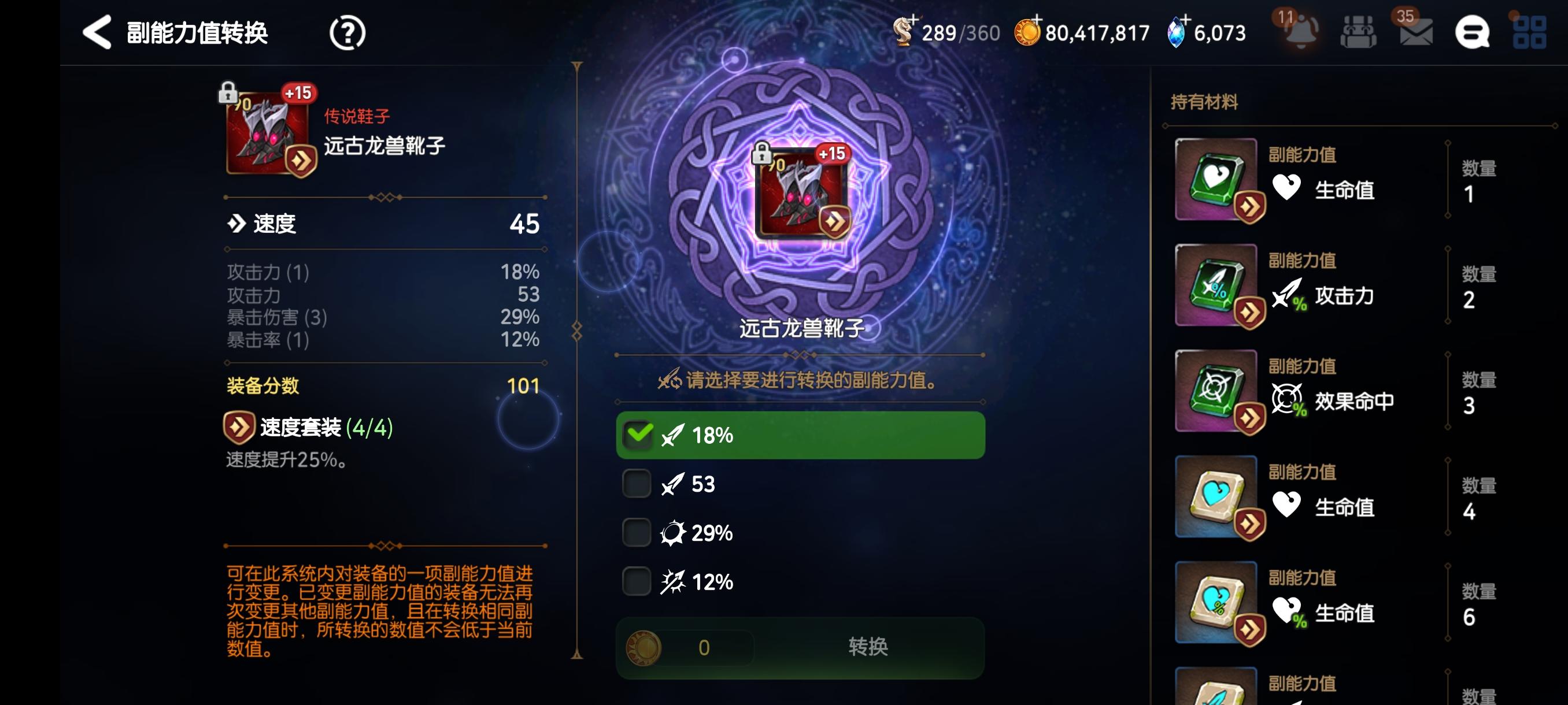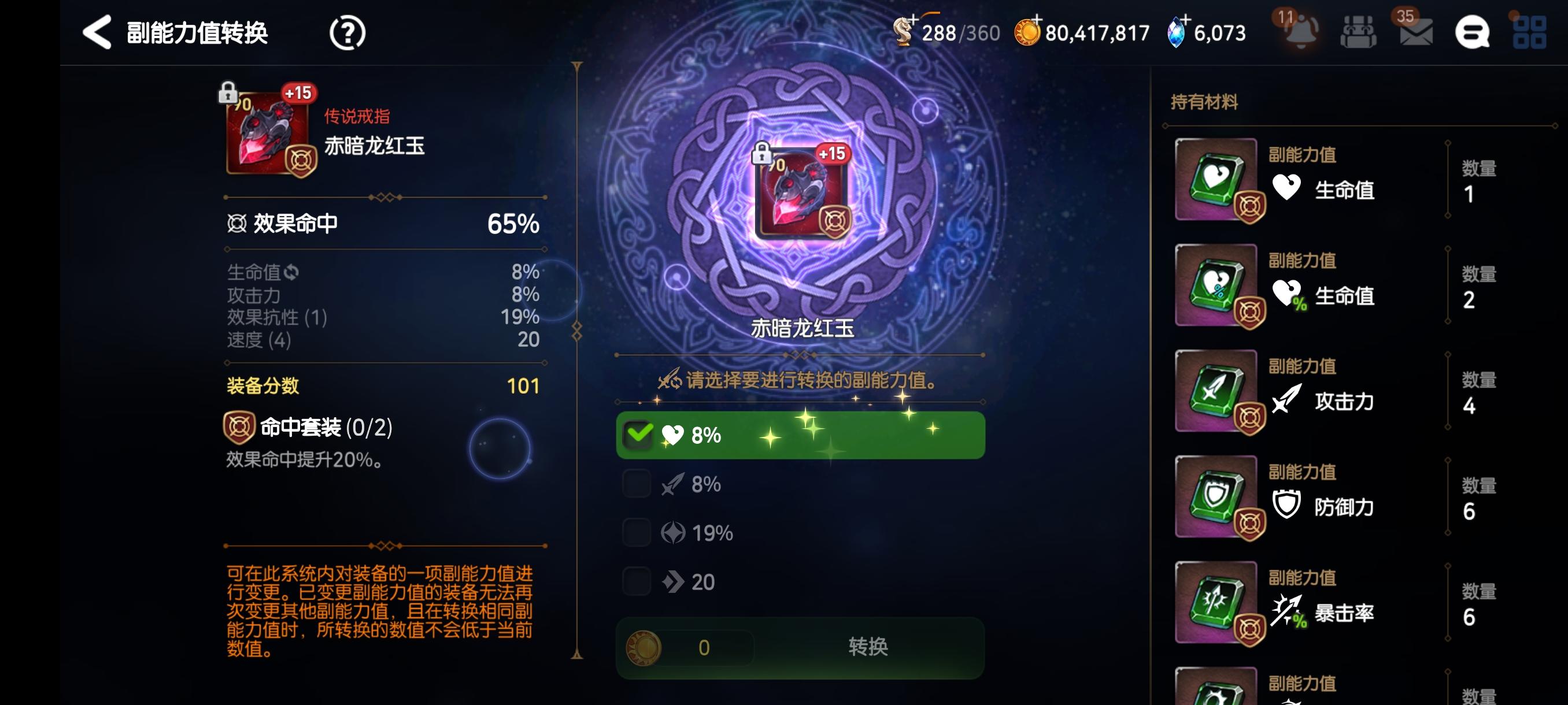这件可以把固定转防御拥有更高的装备分但这里没多大必要,部分百分比的无关词条如果基础分和歪的那次的分过高,转换就会亏分