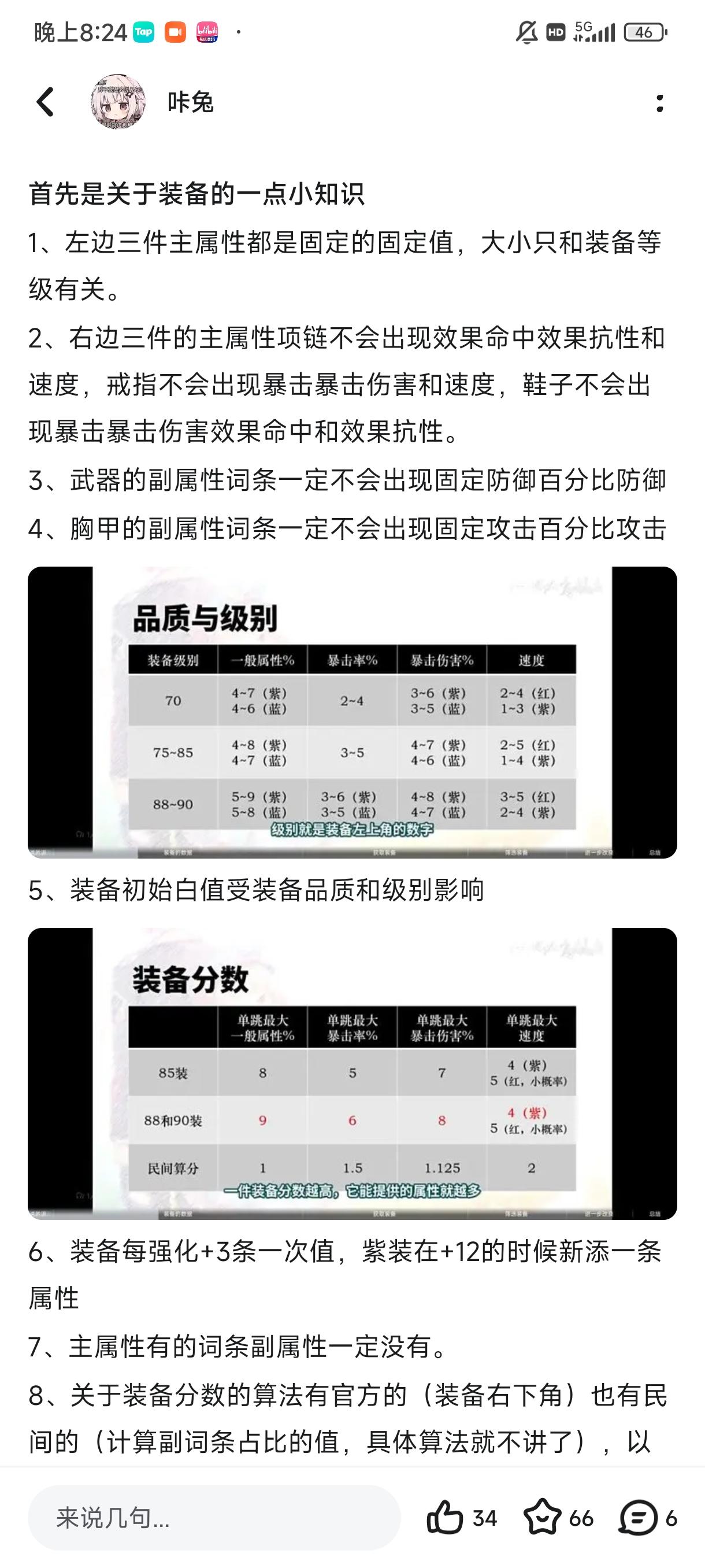 首先看装备基础分,蓝装全部分解,26分或者28分以下不包含3速以上的速度词条的装备也是全部分解