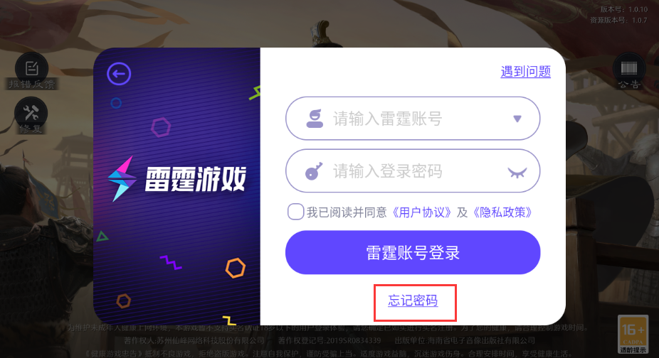 如果上述教程内容无法解决您的账号相关问题,可以在账号登录界面点击右上角的【遇到问题】按钮联系客服,又或者通过雷霆客服服务号(leitingkefu)提交问题联系客服咨询反馈。