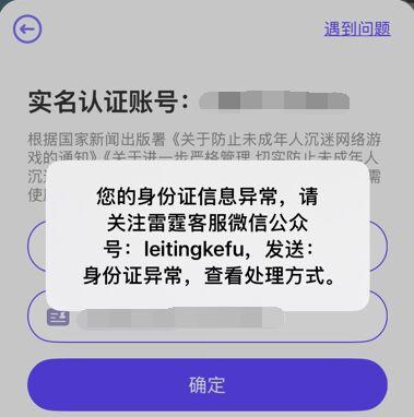 如果您的雷霆账号在实名认证的时候提示身份证信息异常,请核对是否是本人真实有效的身份证信息。目前网络游戏严格要求实名制,我们会将玩家的身份信息上报给国家数据库进行匹配,如果不匹配的话会被系统自动清除并限制使用。目前有两种处理方案: