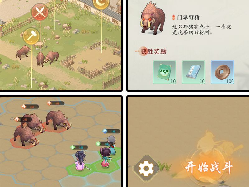 第二步:查看野猪信息及获胜奖励后进入挑战