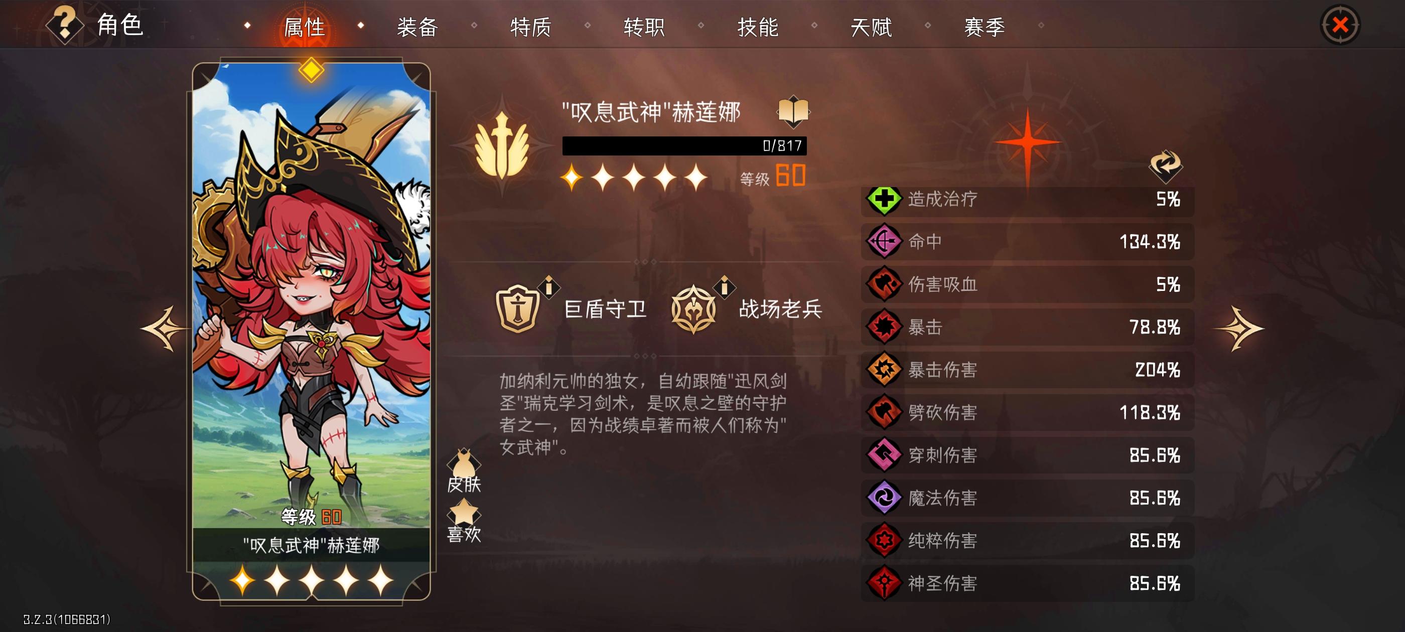 例如,血射老头的狂血之击可以减50%劈砍抗性,巨盾姐姐的普通攻击可以减30%劈砍抗性,征战神提供25%所伤,鲜血神提供额外的减25%劈砍抗性。