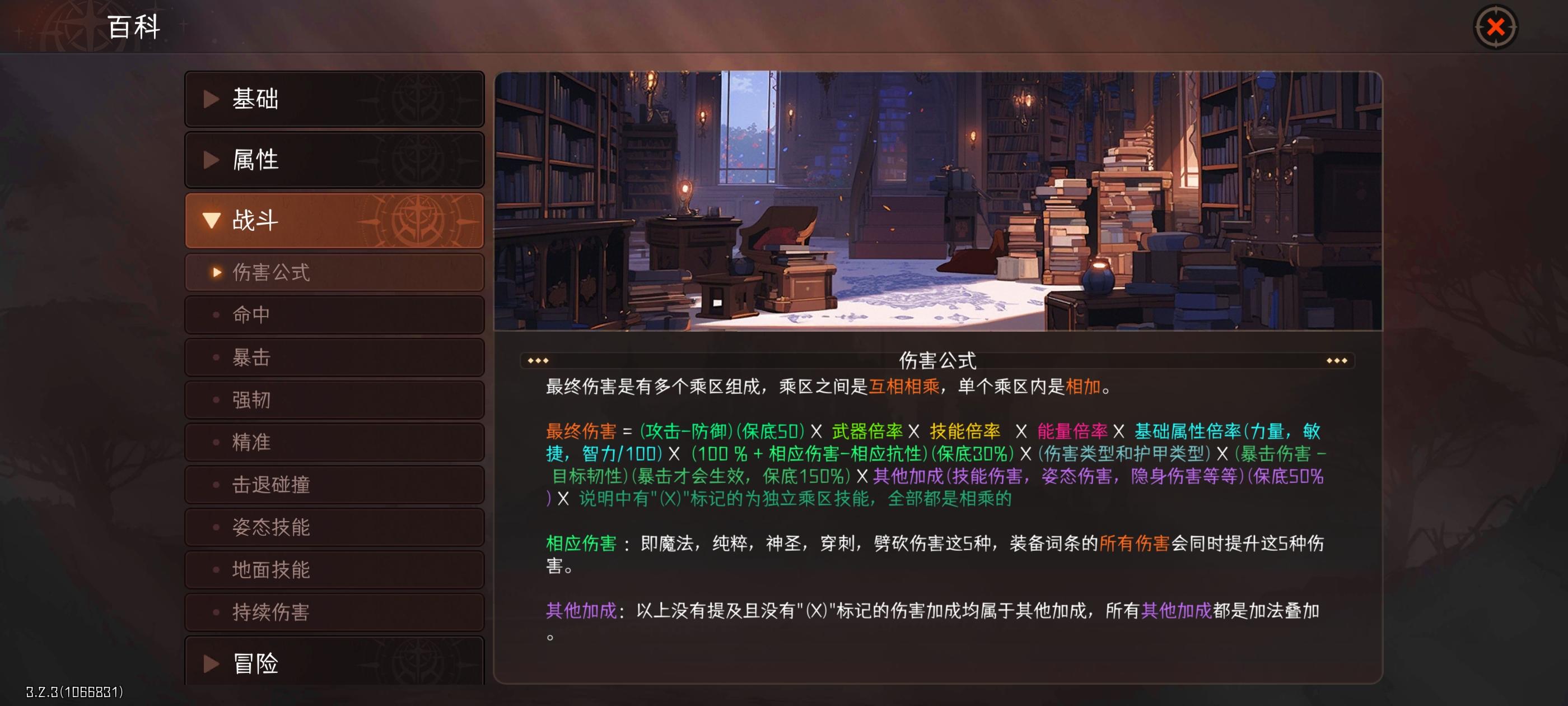 (伤害类型护甲区)×(主属性区)×(武器倍率区)×(攻防区)×(相应伤害区)×(暴击相关区)×(独立乘区)×(各种伤害区)