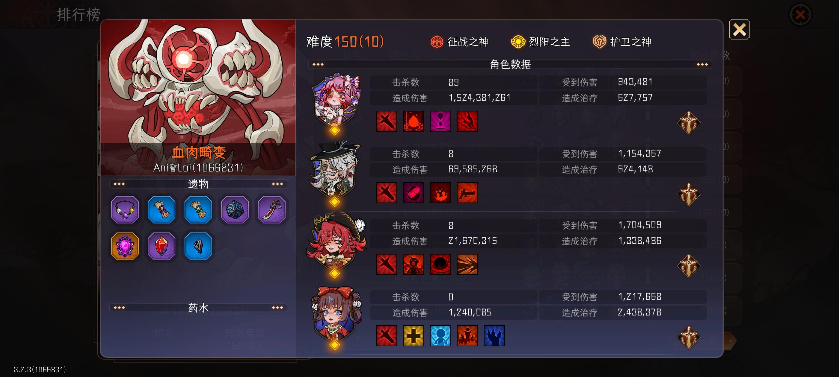 遗物方面,黑盒提供吸血和额外的触发技能机率,战神刀提供行动点对于道中体验非常舒服,其余遗物均用于功能性或面板补充。