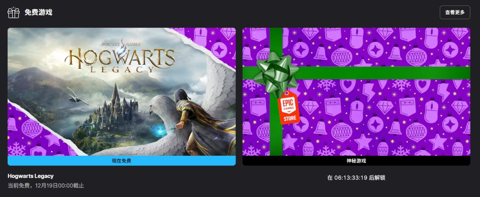 Epic 年度神秘游戏连送活动正式启幕,第一弹便放出重磅福利 ——3A大作《霍格沃茨之遗》限时免费赠送,玩家可在12月19日前登录平台免费入库,永久拥有该作。