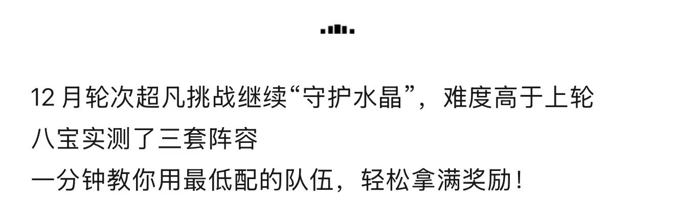 【阵容速递】12月轮次超凡挑战,保姆级阵容轻松拿满奖励!
