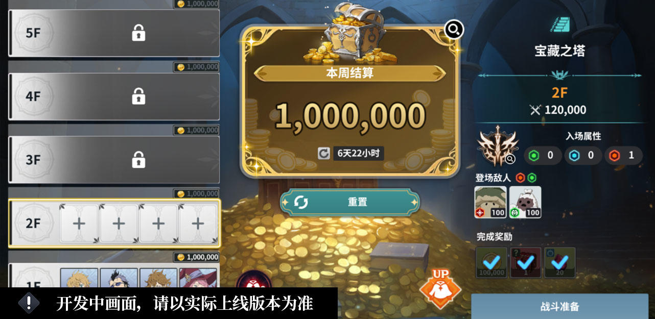 更新完成后,将新增全新常驻玩法「宝藏之塔」,可从主界面【挑战-修炼区域】入口进入。