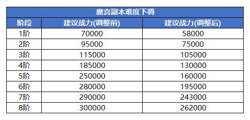 1、 下调【一般挑战-魔宫】副本各阶段难度;