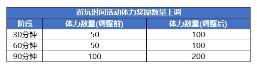 5、上调可通过每日游玩时间活动获取的补充行动力数量。