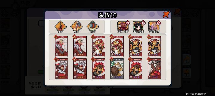 火自残:火系自残由于灵童的存在容错非常高,伤害也是溢出的存在。楼主自己2星灵童,2星弯弓,通关45无压力,配阵参考截图。
