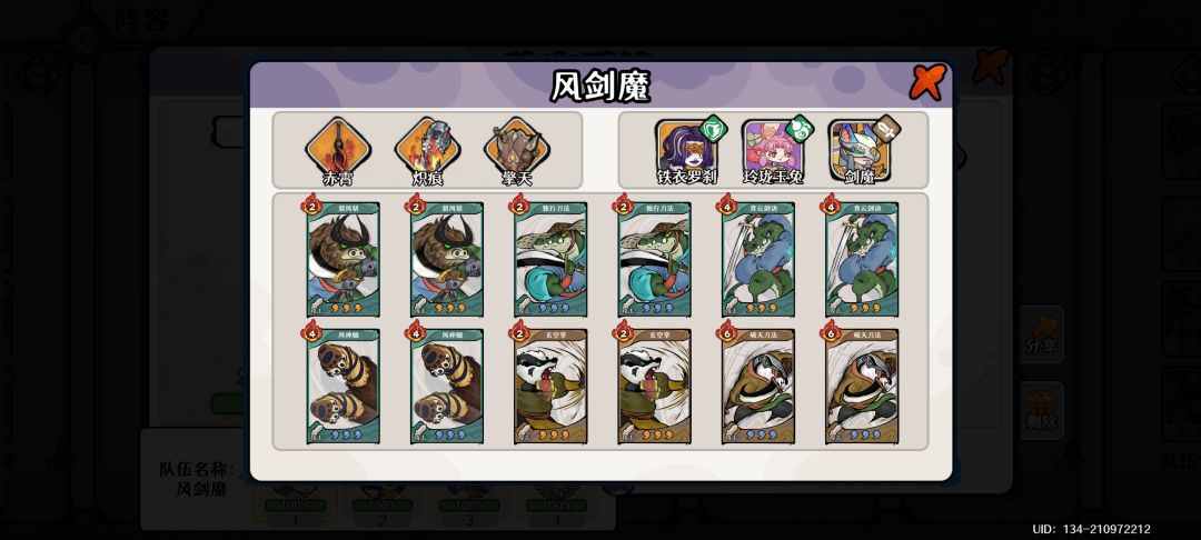 风剑魔:剑魔是1拖2的存在,加上传人追击太过刮痧,容易翻车,可以用来打风系蓬莱,自动挂机即可通关。阵容参考截图。