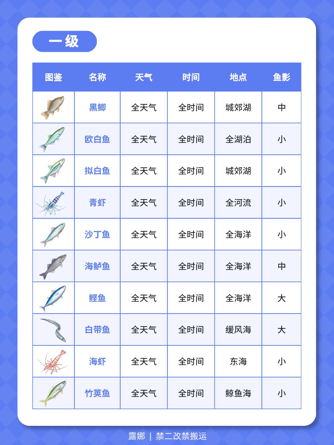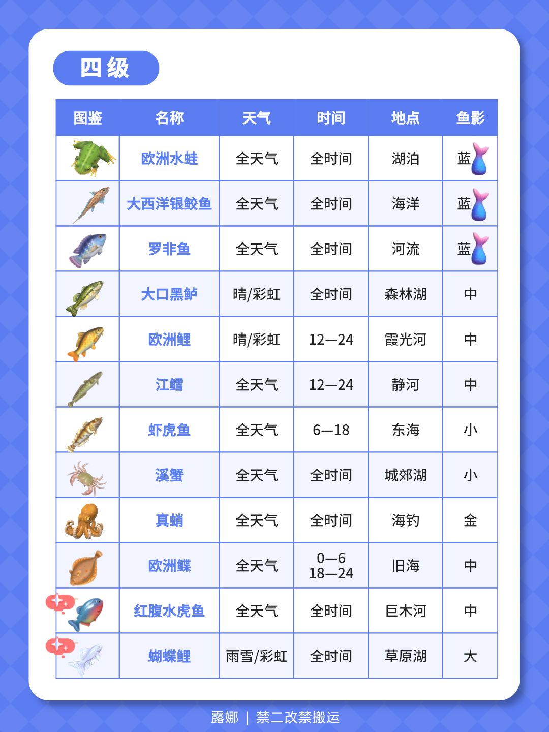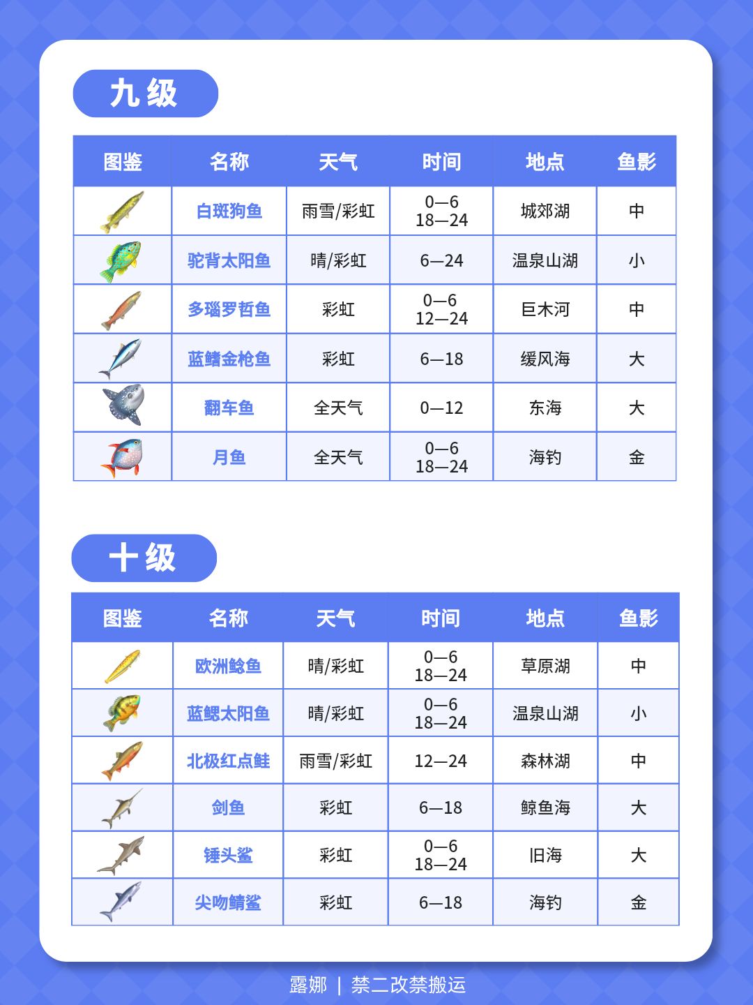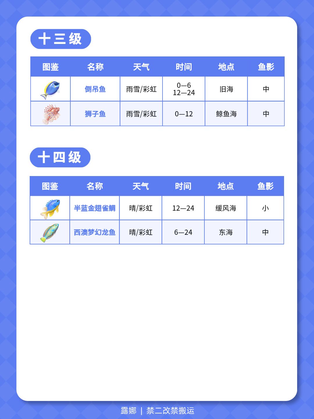 1级-14级 钓鱼全图鉴 位置天气时间鱼影大小