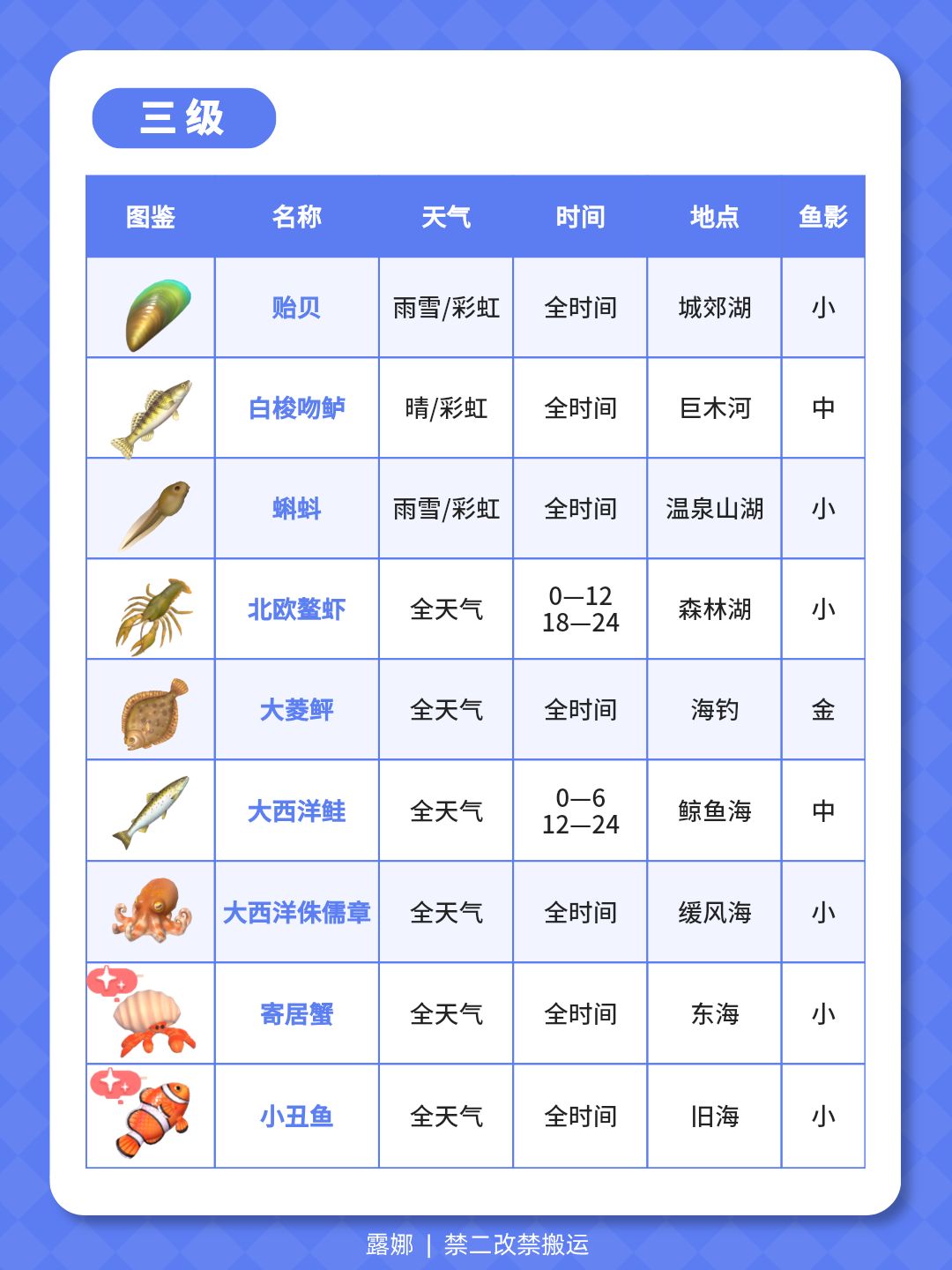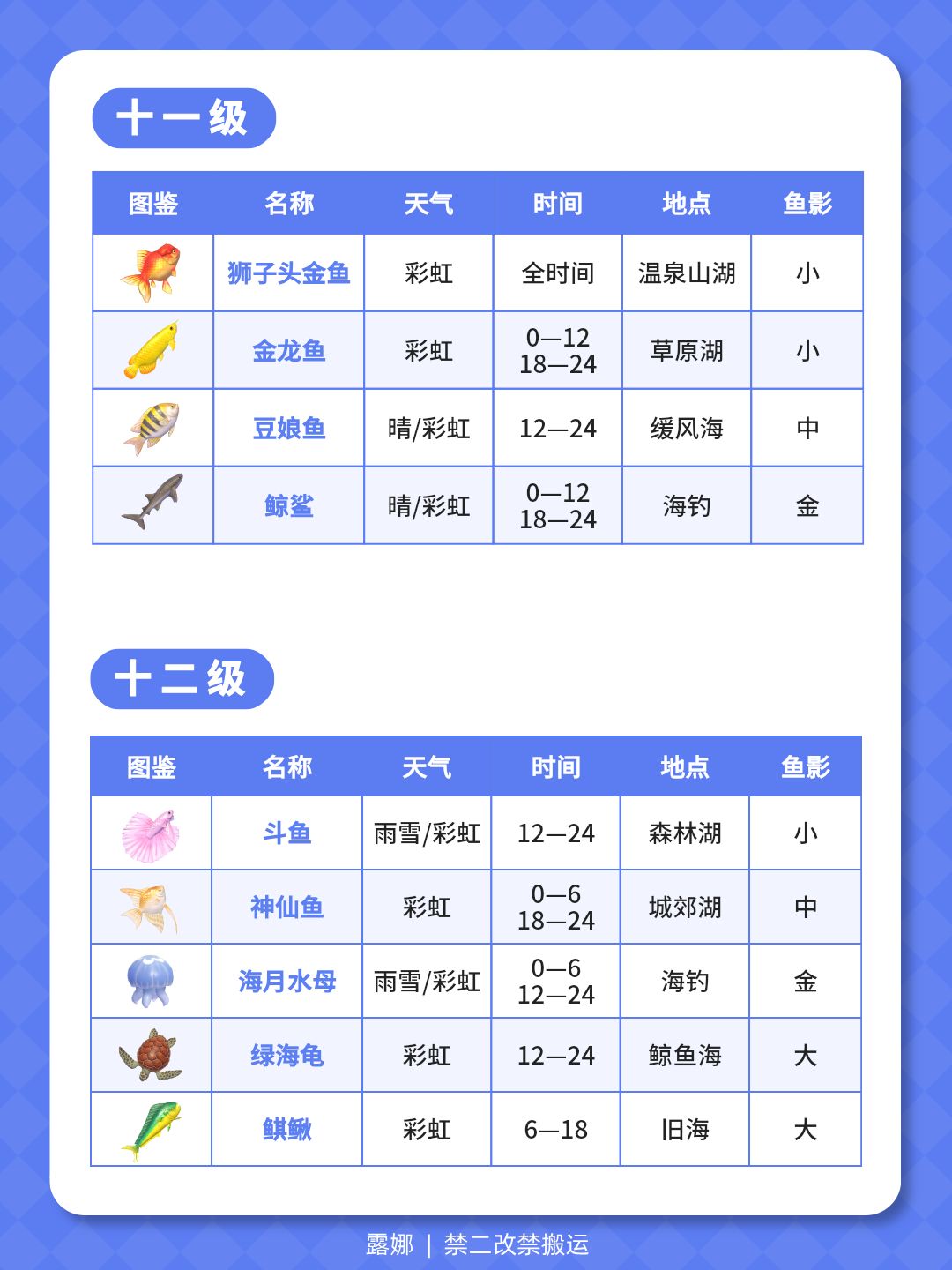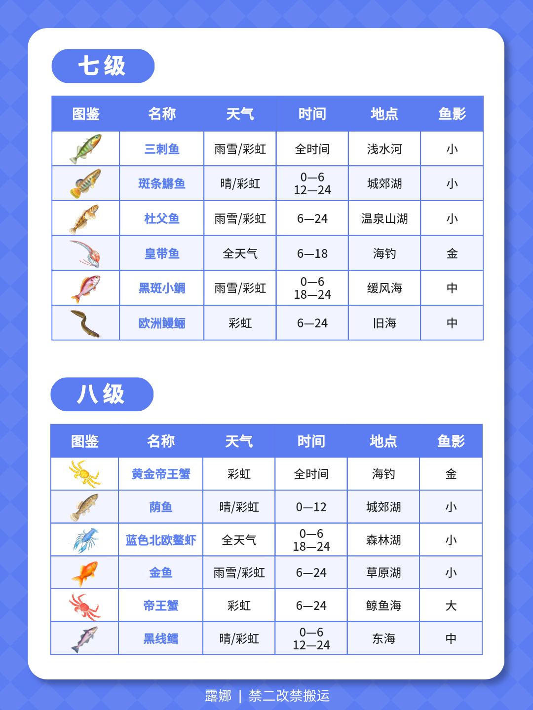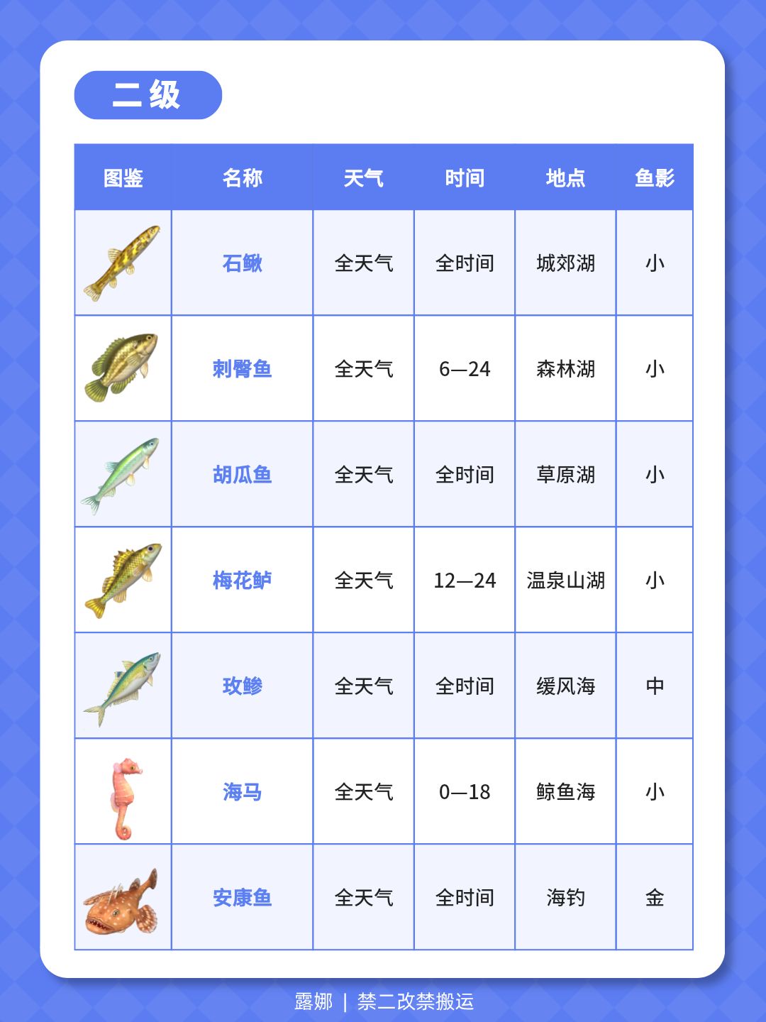 1级-14级 钓鱼全图鉴 位置天气时间鱼影大小
