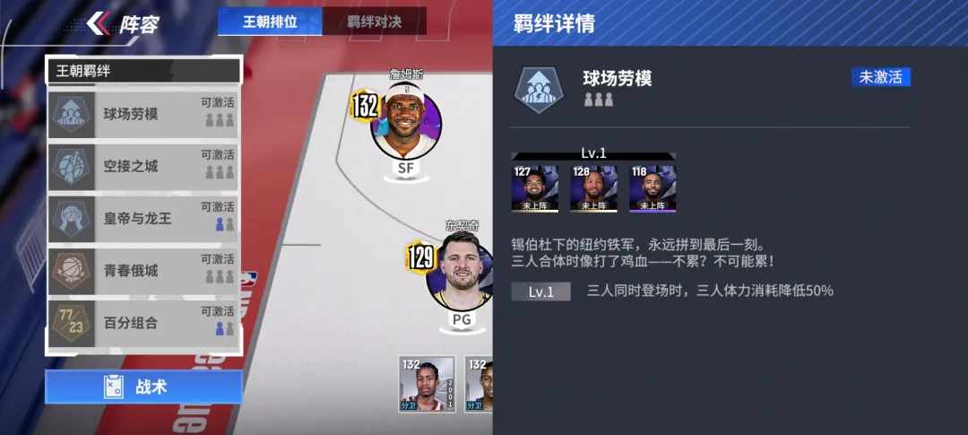1. 重做王朝羁绊“球场劳模”:体力消耗(包括体力上限与实时体力)降低50%。