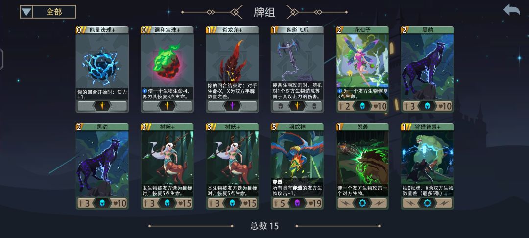 打法思路:通过反复过牌尽量每回合都拿到怒袭然后集中资源给树妖打爆发