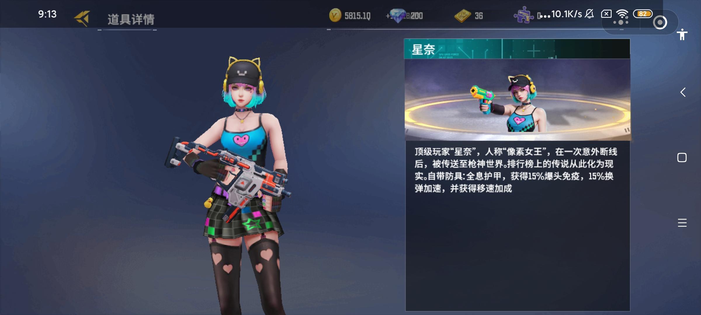 顶级玩家“星奈”,人称“像素女王”,在一次意外断线后,被传送至枪神世界。排行榜上的传说从此转化成现实。自带防具:全息护甲,获得15%爆头免疫,15%换弹加速,并获得移速加成。