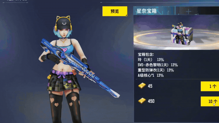 然后奖池中有角色玲一天,SVD赤色黎明一天,重型防弹衣一天,a核一个,绝地武士光剑一天,SG629小白龙一天,无妄双斧一天等凑数奖励,如果大家体验了觉得好用可以去另外购买。