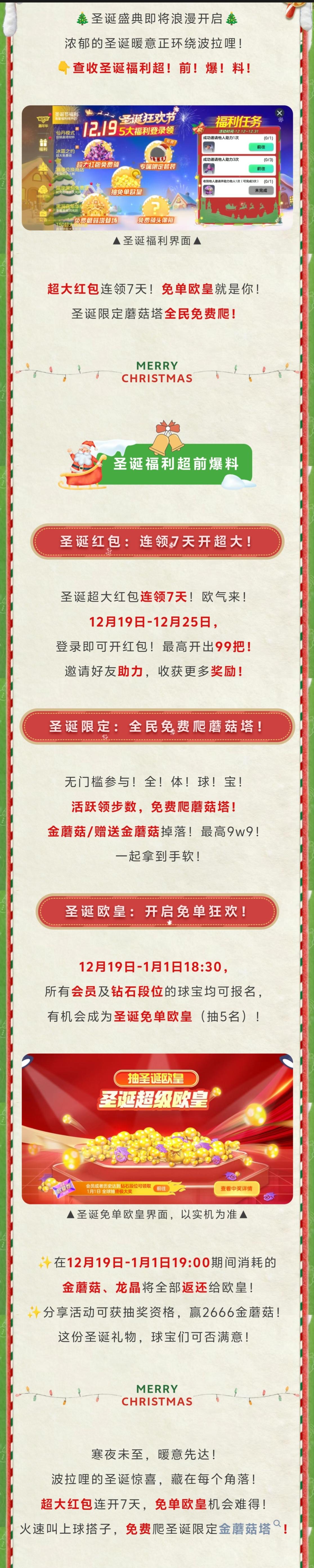 圣诞福利超!前!爆!料!金蘑菇塔全员0元爬!?
