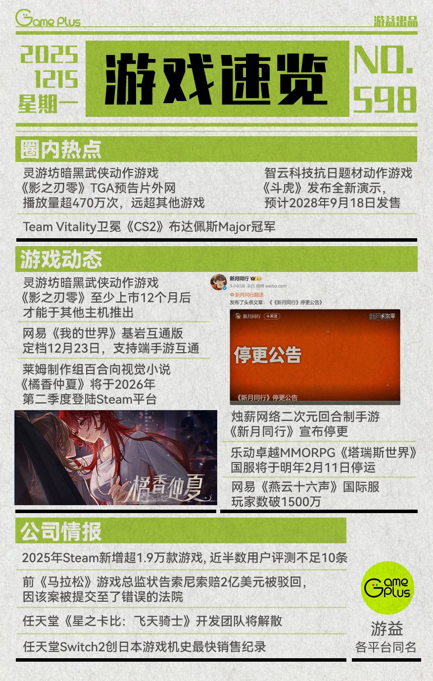 1.灵游坊暗黑武侠动作游戏《影之刃零》TGA预告片外网播放量超470万次,远超其他游戏