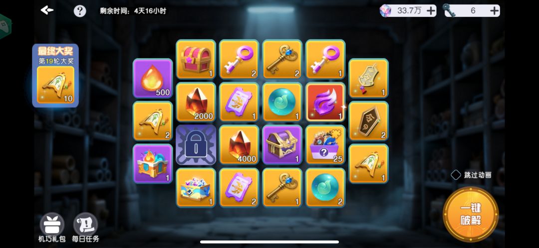 • 纯保底路线(仅升1格并拿完所有奖励),总共需钥匙82把。