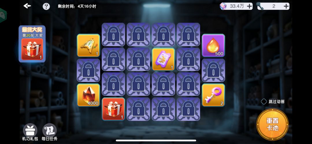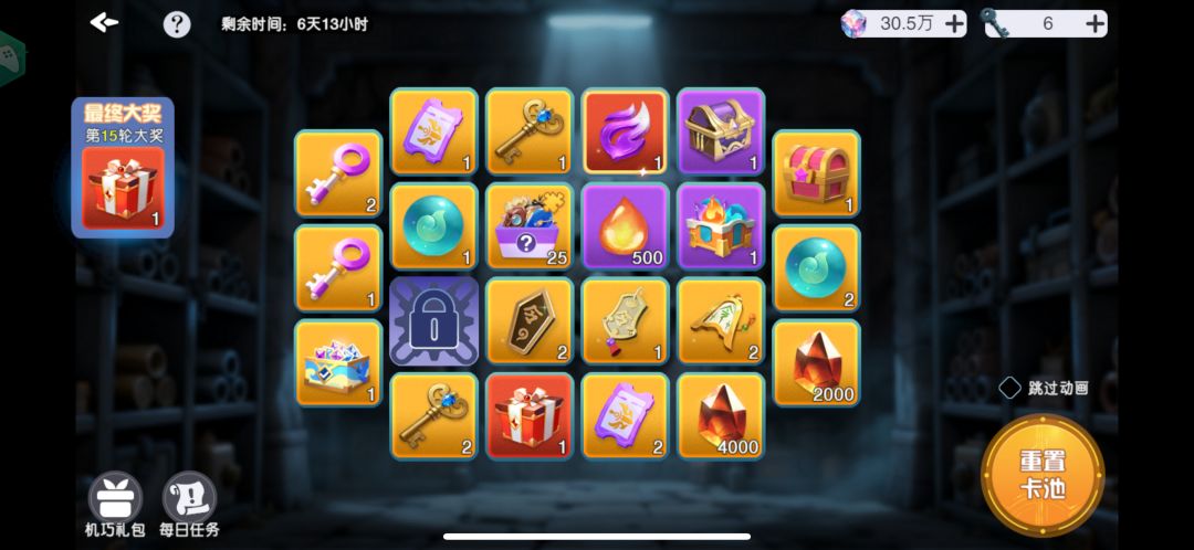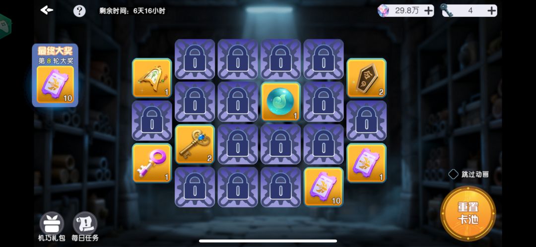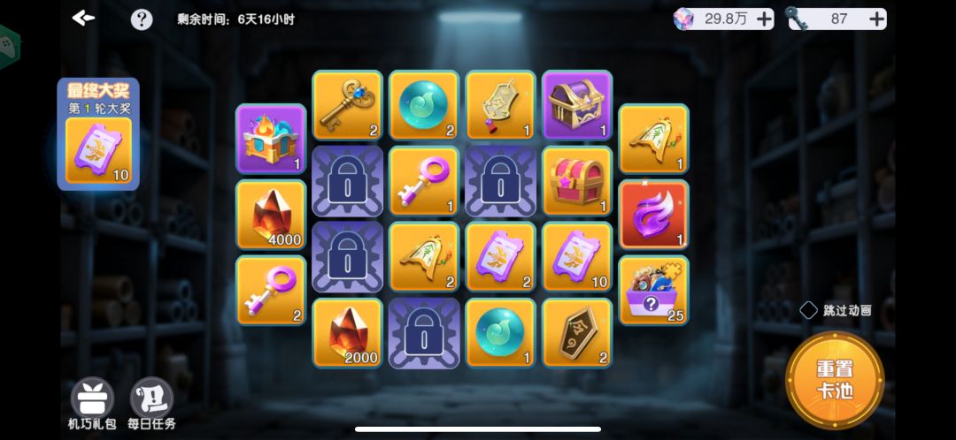 注:只有钥匙可以保留,已抽取完的次数不会保留,因此务必保证能抽出保底再进行抽取。