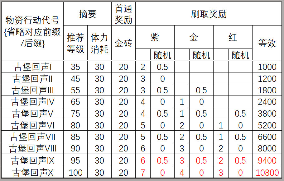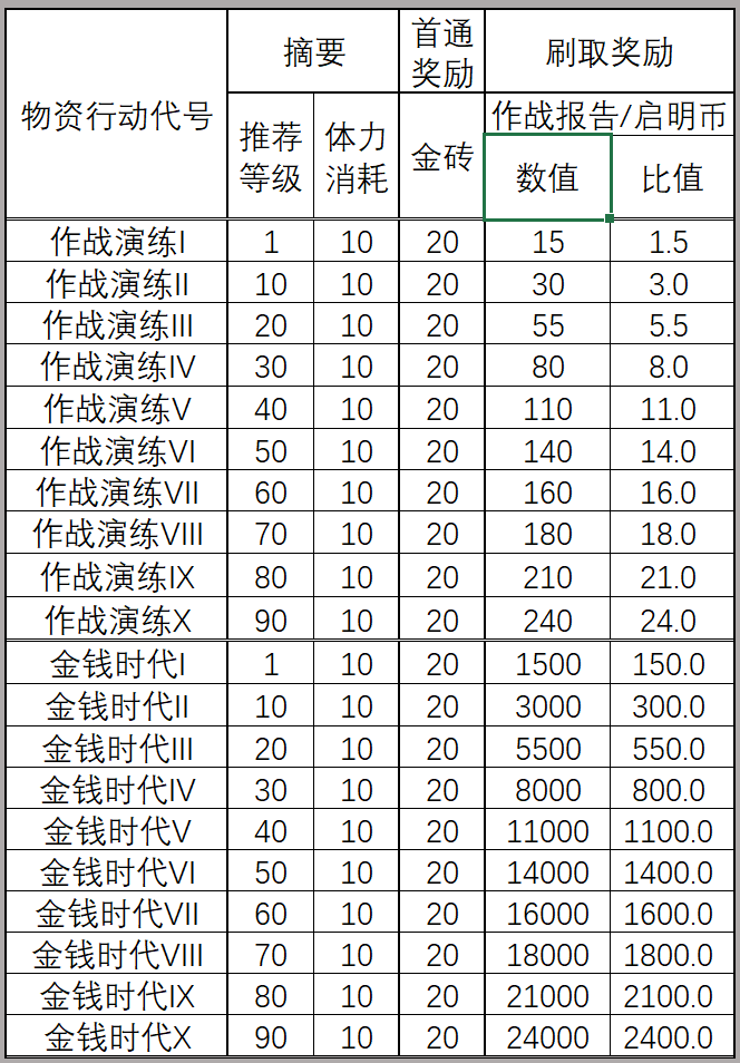 - 最少等效体力代表:在最高等级的关卡刷取获得材料的比值