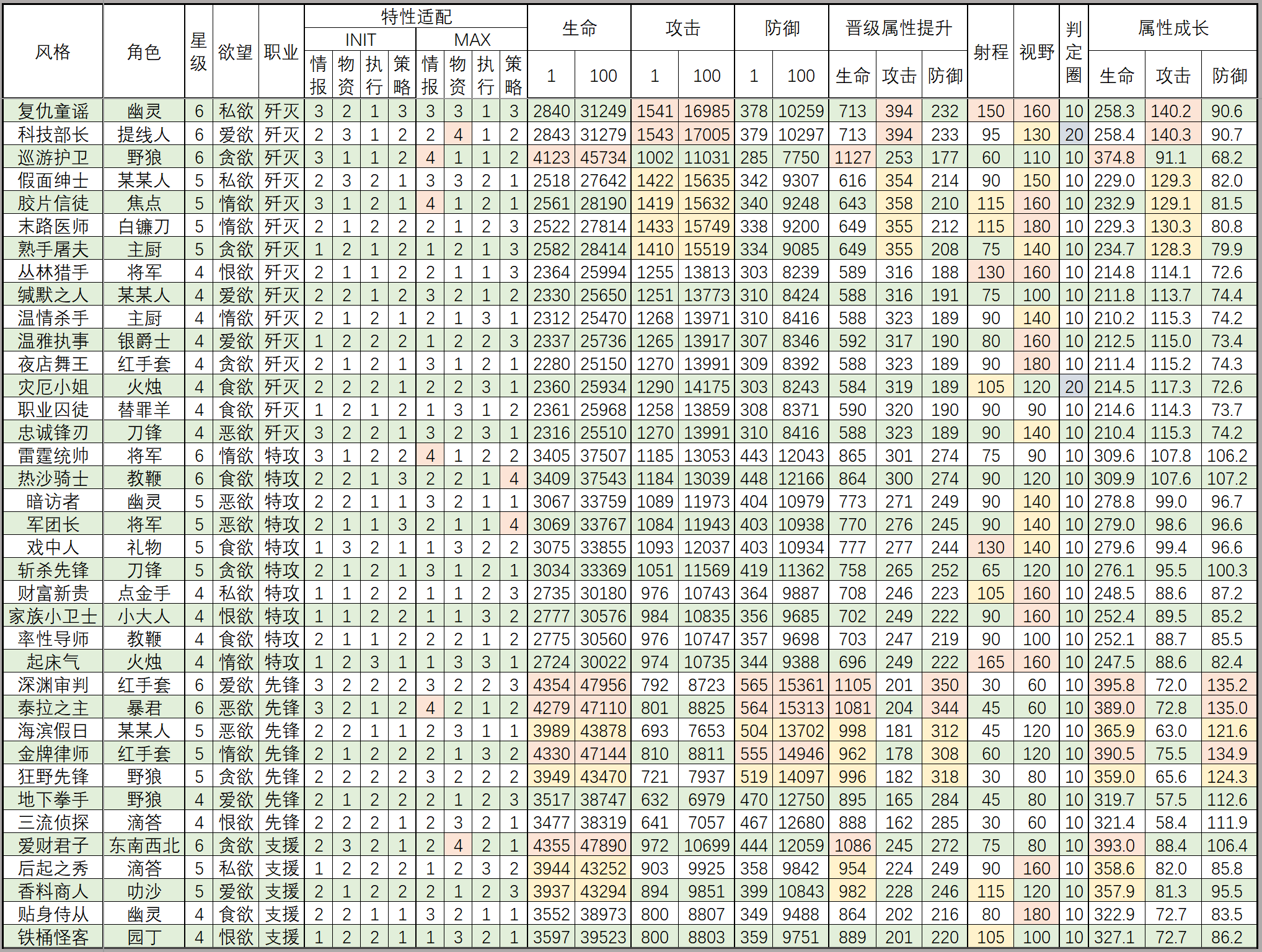 斩杀先锋、灾厄小姐、香料商人的塑造给的属性提升异常,3%和5%反了,且斩杀先锋的天赋I是10%伤害减免而非2%伤害减免(疑似更改星级后却没改塑造加成)