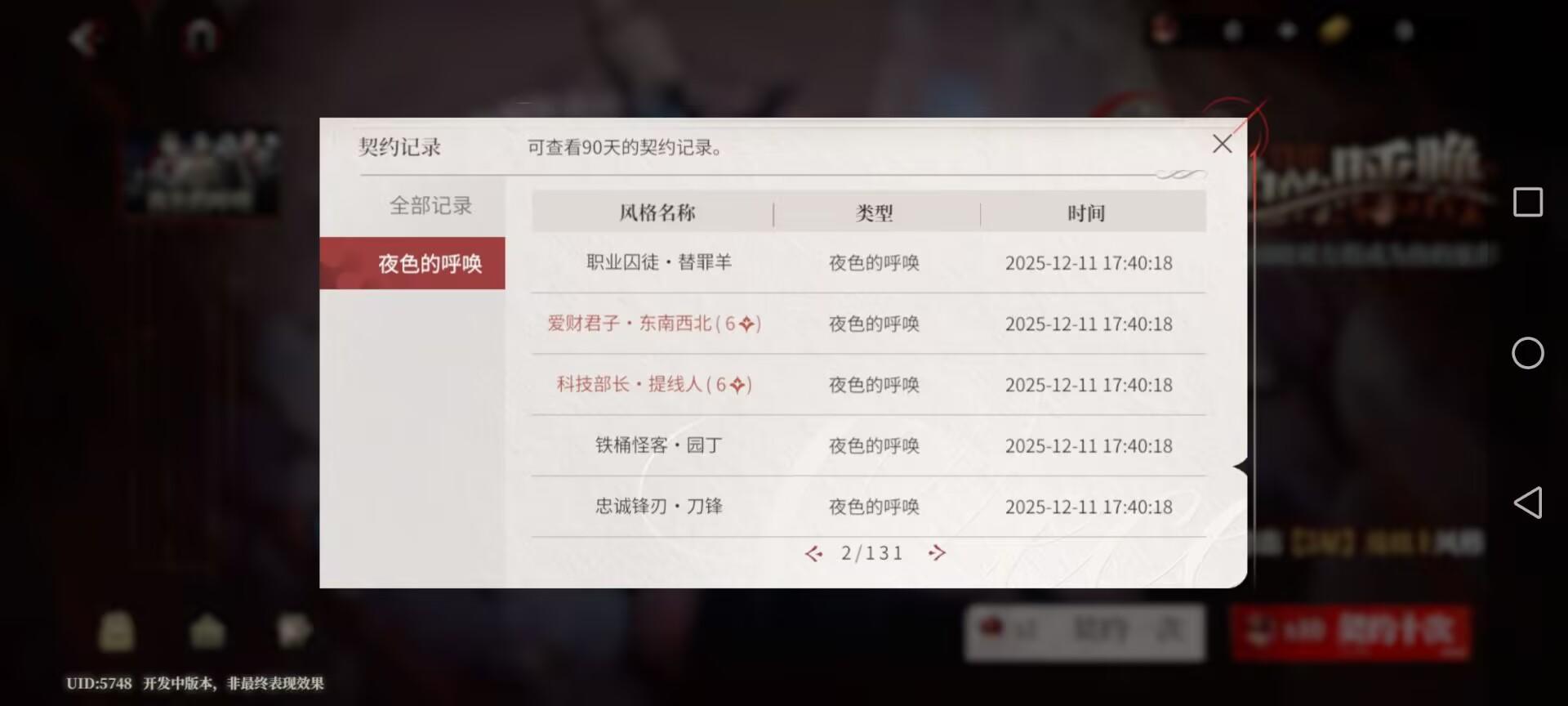 关服前二十分钟抽出了最后一个六星,爱财君子,然后光速测完数据,可惜不能更进一步,不过完整性还是保证了,hiahia