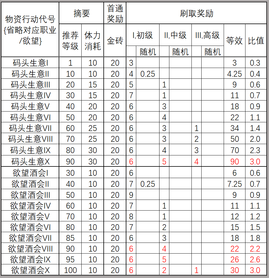 - 因游戏中已有派遣等级-任务星级刷新概率的图,不抄了……